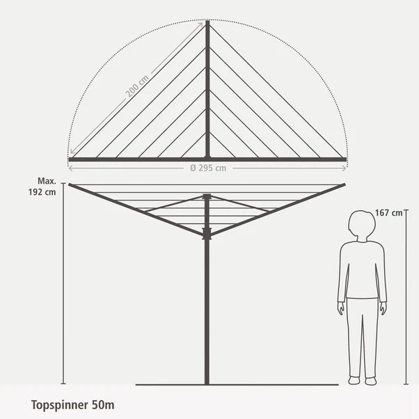 Brabantia 4 Arm Top Spinner Rotary Washing Line, 50m