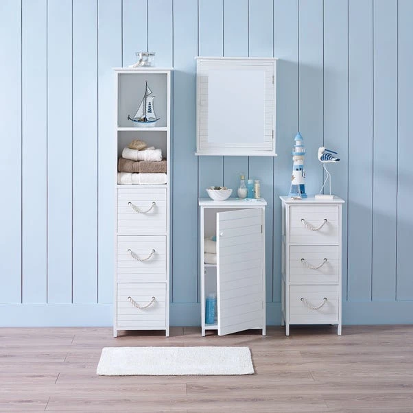 Designed in a nautical style, this mirror is finished in a clear white colour and features subtle wooden slat frame detailing.