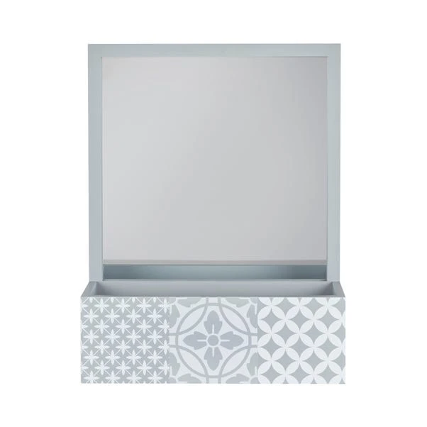 Part of the simple yet elegant Purity Geo Tile range, this mirror is ideal for adding a practical multi-purpose space-saving solution to your bathroom. This mirror features a shelf for added storage for all your bathroom essentials. In a grey colourway, this mirror would compliment any bathroom beautifully.