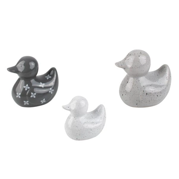 Dunelm Set Of 3 Geo Grey Ceramic Ducks