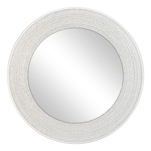 Featuring a glittered glass border, this round mirror is crafted in a circular shape and is easy to hang in the bedroom or bathroom.