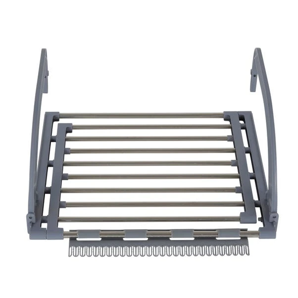 Ideal for all small in-between drying jobs or for flat drying of delicate laundry, this telescopic radiator airer features adjustable arms to fit any radiator and an extendable width to maximise drying space. This airer has a maximum weight load of 4kg and its adjustable size means its easy to store away after use. Perfect for drying clothes in any indoor space.