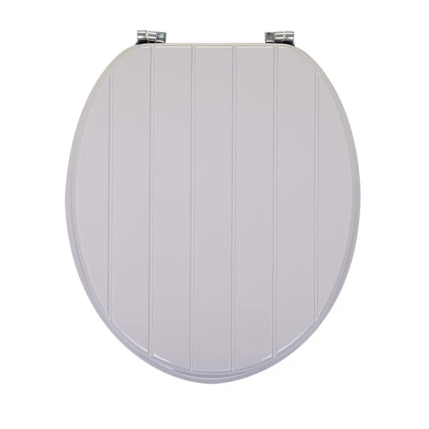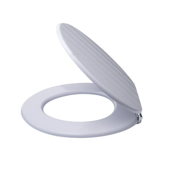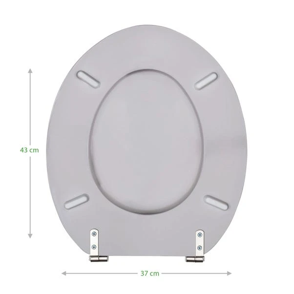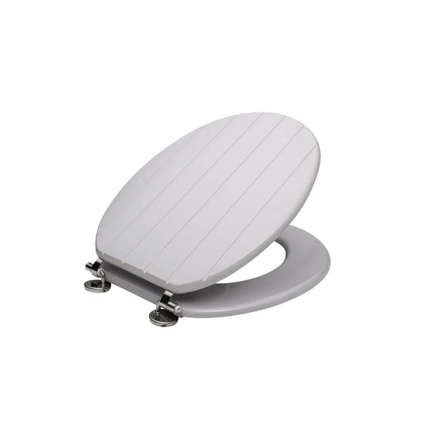 Crafted from MDF, this grey toilet seat has an embossed linear grooved design with rust proof stainless steel hinges and a heavy weight of 3kg.