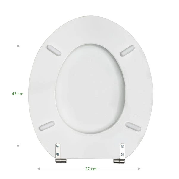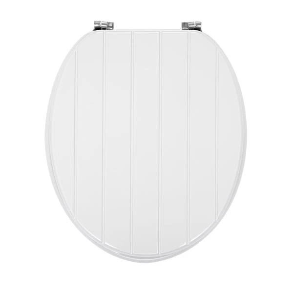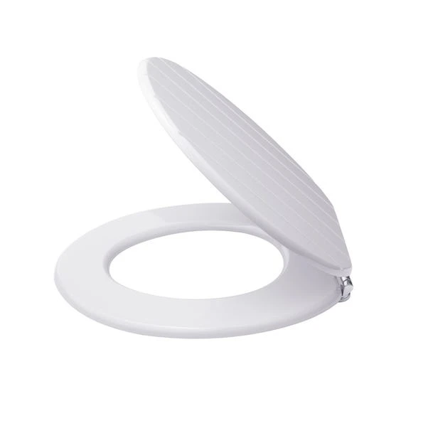 Crafted from MDF, this white toilet seat has an embossed linear grooved design with rust proof stainless steel hinges and a heavy weight of 3kg.