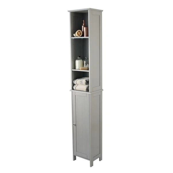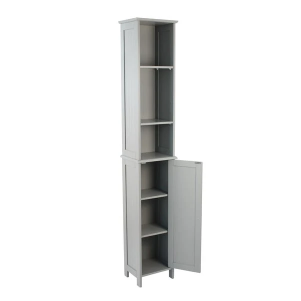 With a contemporary grey finish, this tall cabinet features 6 shelves; three open and three behind a hinged cupboard door. Ideal for storing and displaying your bathroom accessories and essentials, this cabinet brings you a stylish storage solution that takes up little floor space due to its tall, slim design.